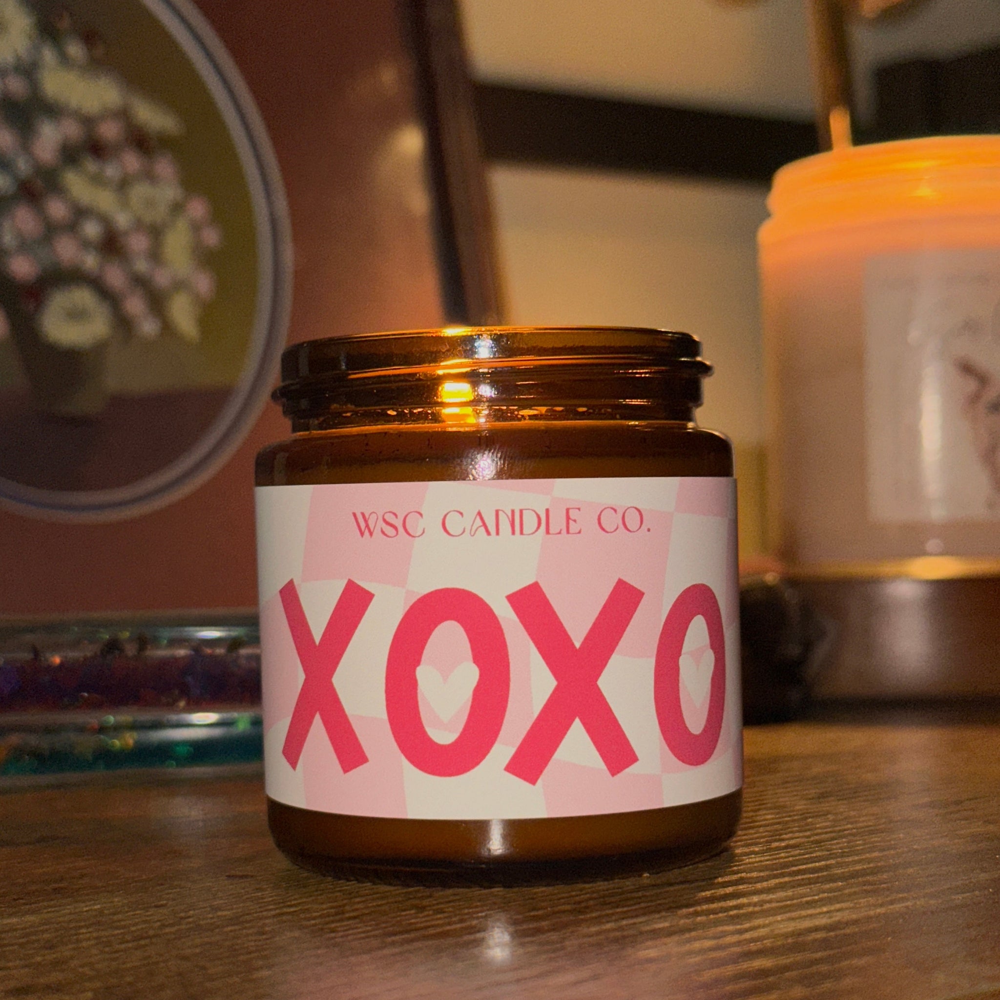 XOXO - 4 oz mini candles scented in a luxe blend of juicy berries and sparkling citrus, softened with creamy coconut, vanilla, and sugared musk for a sweet, bubbly finish that feels playful yet polished.