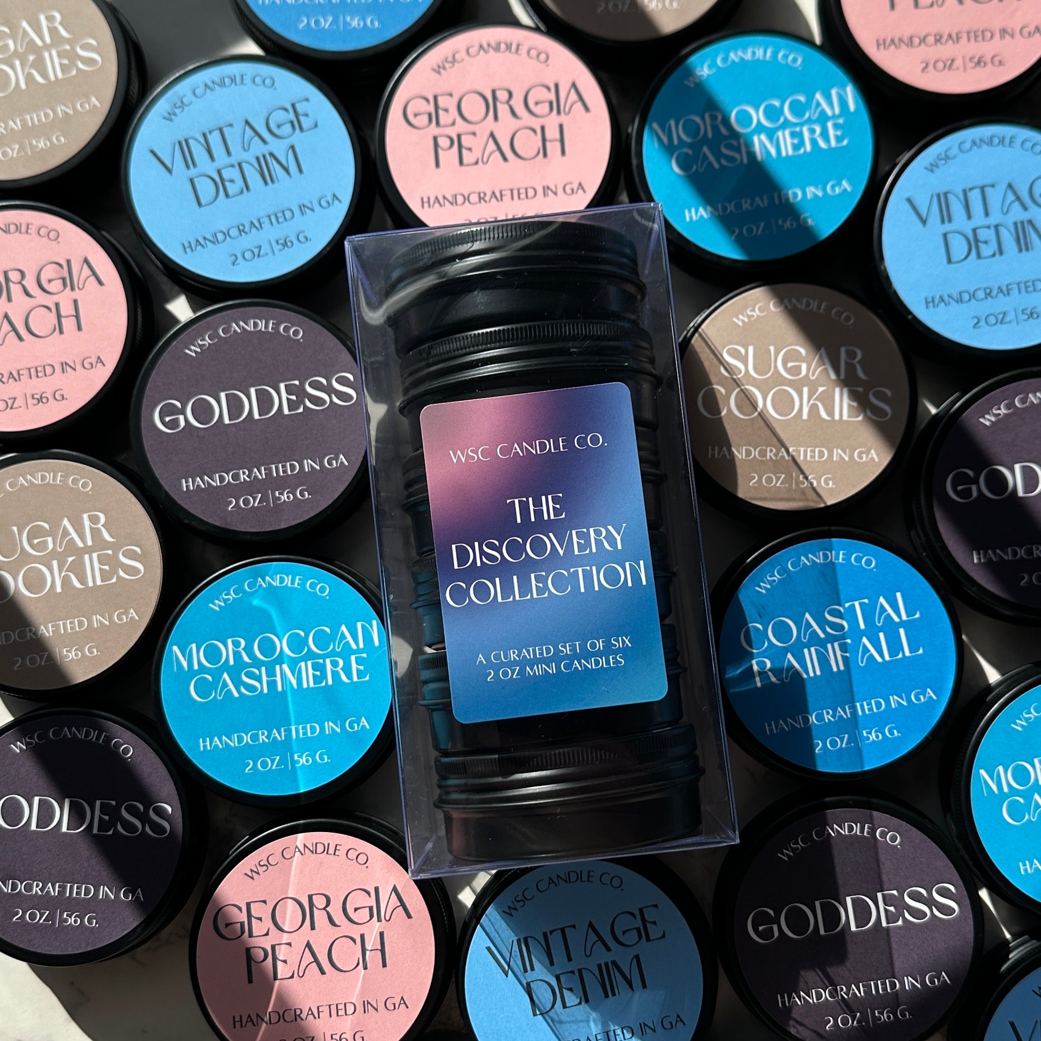 Our Discovery Collection is a thoughtfully assembled set of six 2 oz mini candles, designed to let you explore a range of our signature scents before committing to a full size or simply enjoy variety throughout your space.